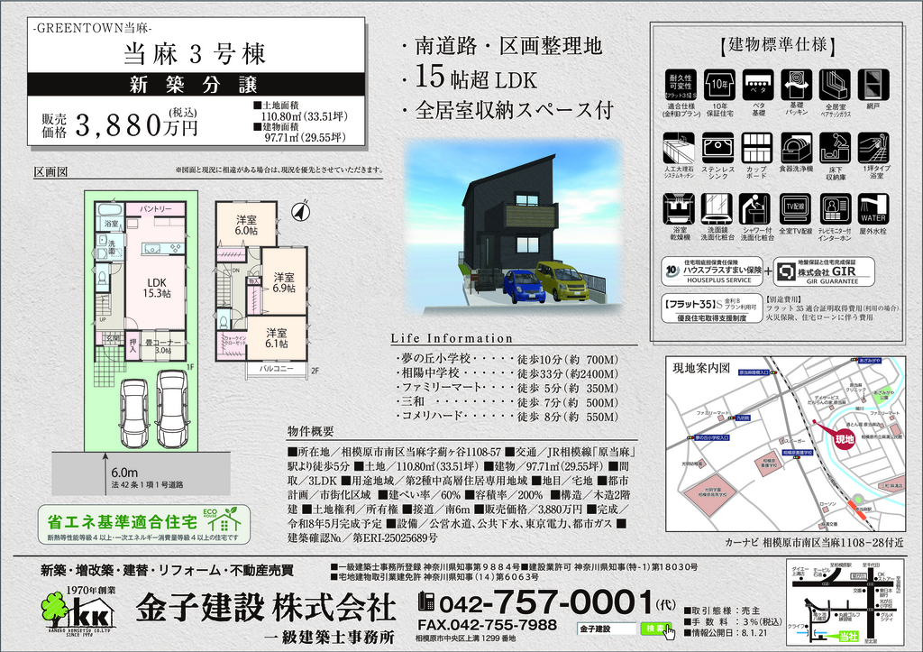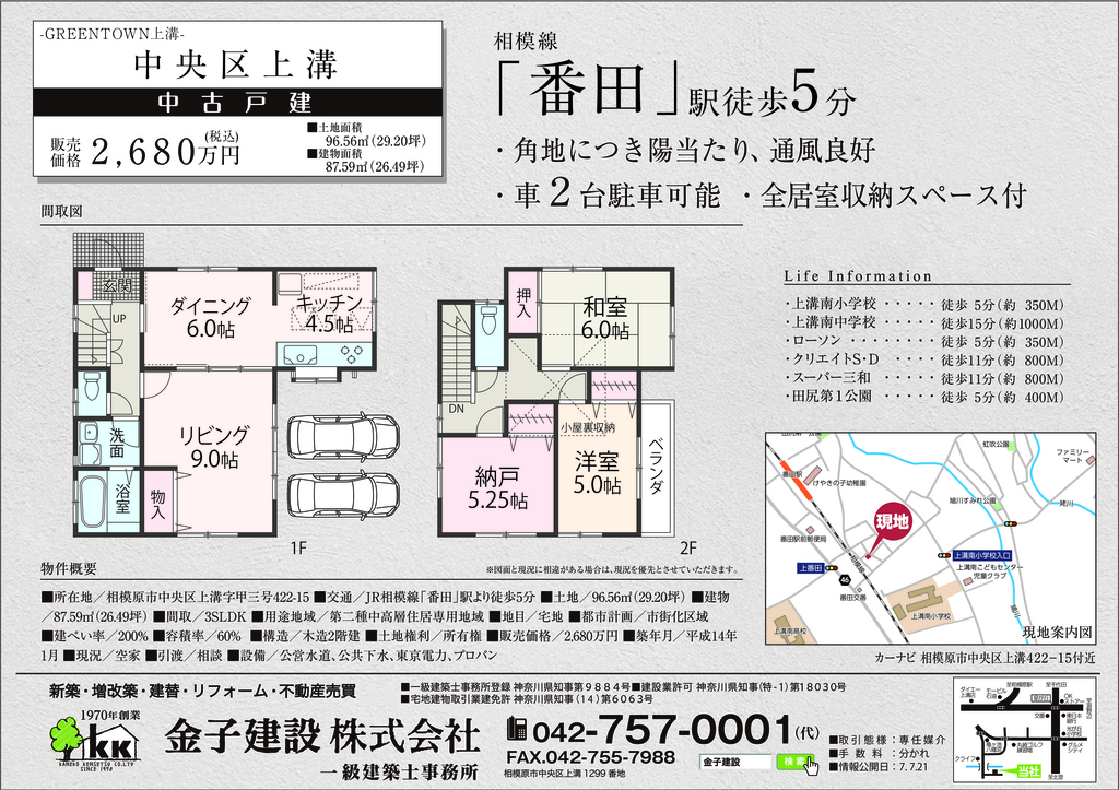 JR横浜線「淵野辺」駅バス9分停歩1分JR相模線「上溝」バス5分停歩6分